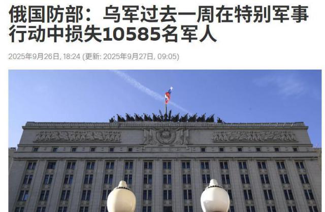 与此同时,俄军在过去一周内宣称消灭乌军超过 10585 人,创下 2025 年以来单周最高纪录。