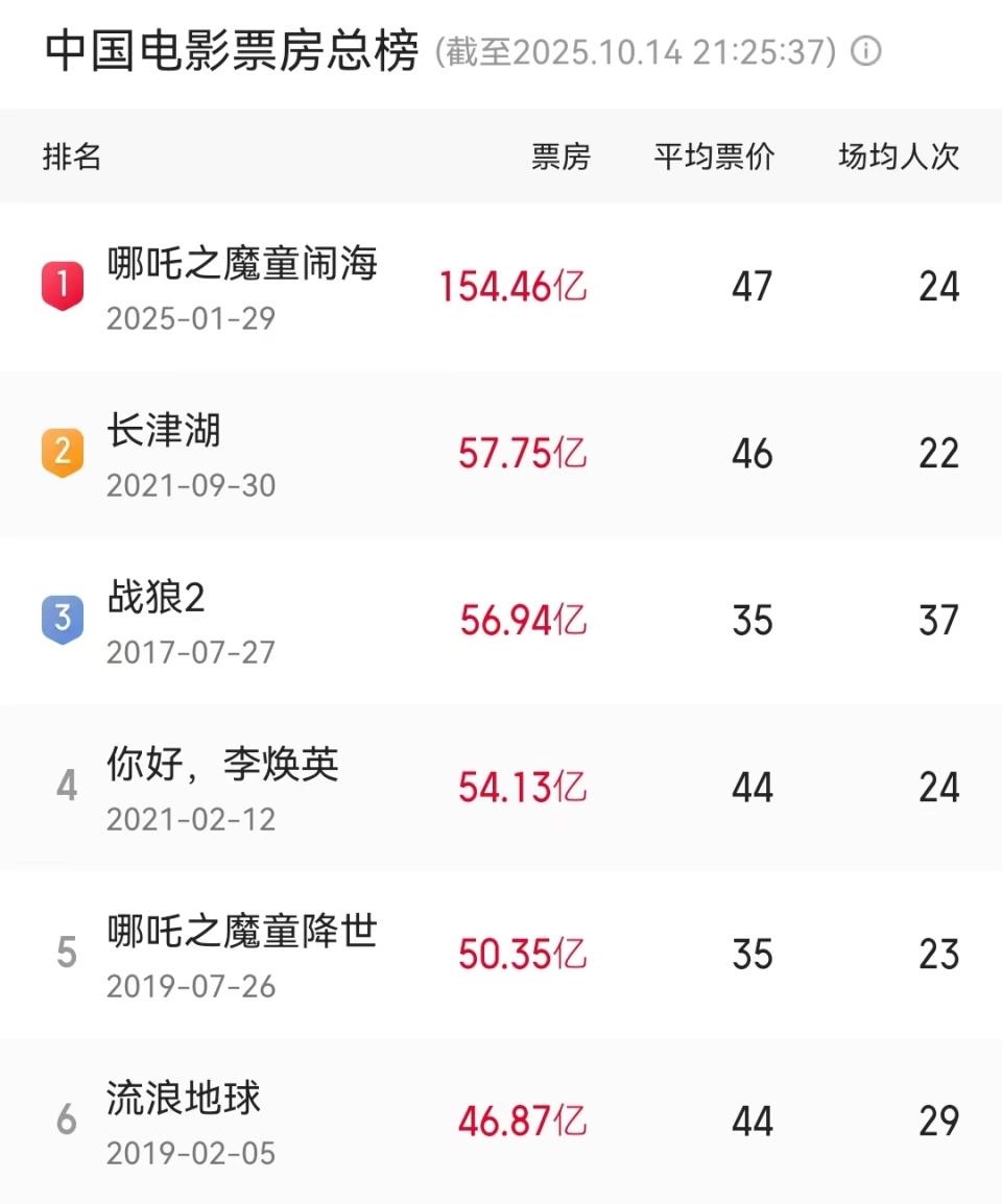 因为当年《长津湖》的总票房超过了吴京的《战狼2》成了新的中国影史票房冠军,如果不是今年的《哪吒2》,恐怕很长时间都无法破掉《长津湖》57.75亿票房纪录。
